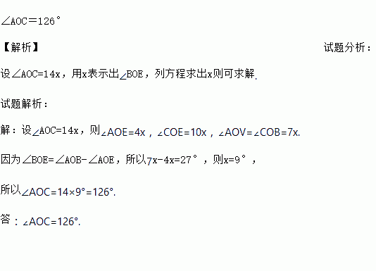 如图,OB平分∠AOC,OE分∠AOC成2:5两部分,∠BOE=27°,求∠AOC的度数.