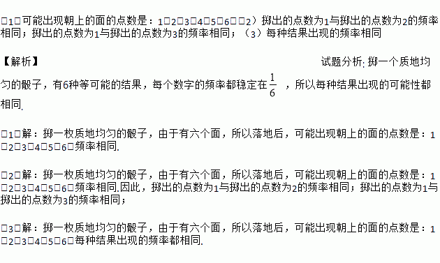 £¨2£©ÖÀ³öµÄµãÊýΪ1ÓëÖÀ³öµÄµãÊýΪ2µÄƵÂÊÏàͬÂð£¿ÖÀ³öµÄµãÊýΪ1ÓëÖÀ³öµÄµãÊýΪ3µÄƵÂÊÏàͬÂð£¿