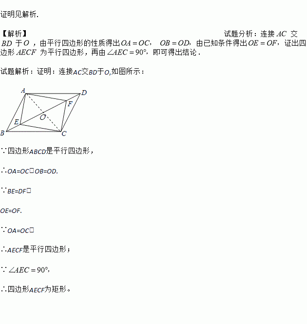 如图,已知E、F为平行四边形ABCD的对角线上的两点,且BE=DF,∠AEC=90°.求证:四边形AECF为矩形.
