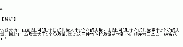 设.表示三种不同的物体,用天平比较它们质量的大小,情况如图,那么这三种物体按质量从大到小的顺序为( )