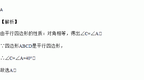 如图,在平行四边形ABCD中,∠A=40°,则∠C大小为( )