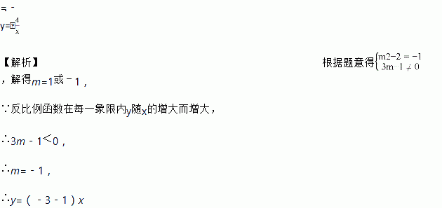 反比例函数y=(3m﹣1)的图象在所在象限内,y随x的增大而增大,则反比例函数的解析式是_____.
