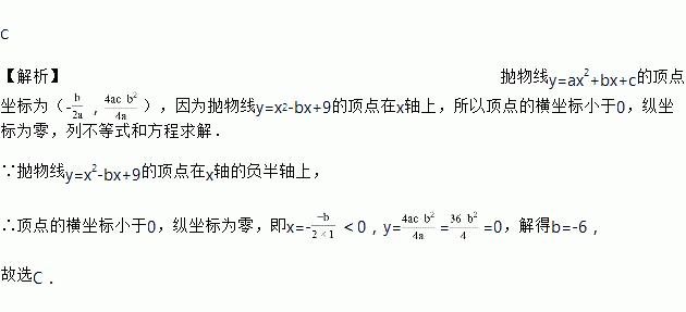若抛物线y=x2-bx+9的顶点在x的负半轴上,则b的值为( )