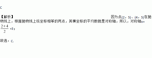 若(2,5),(4,5)是抛物线y=ax2+bx+c上的两个点,则抛物线的对称轴是( )