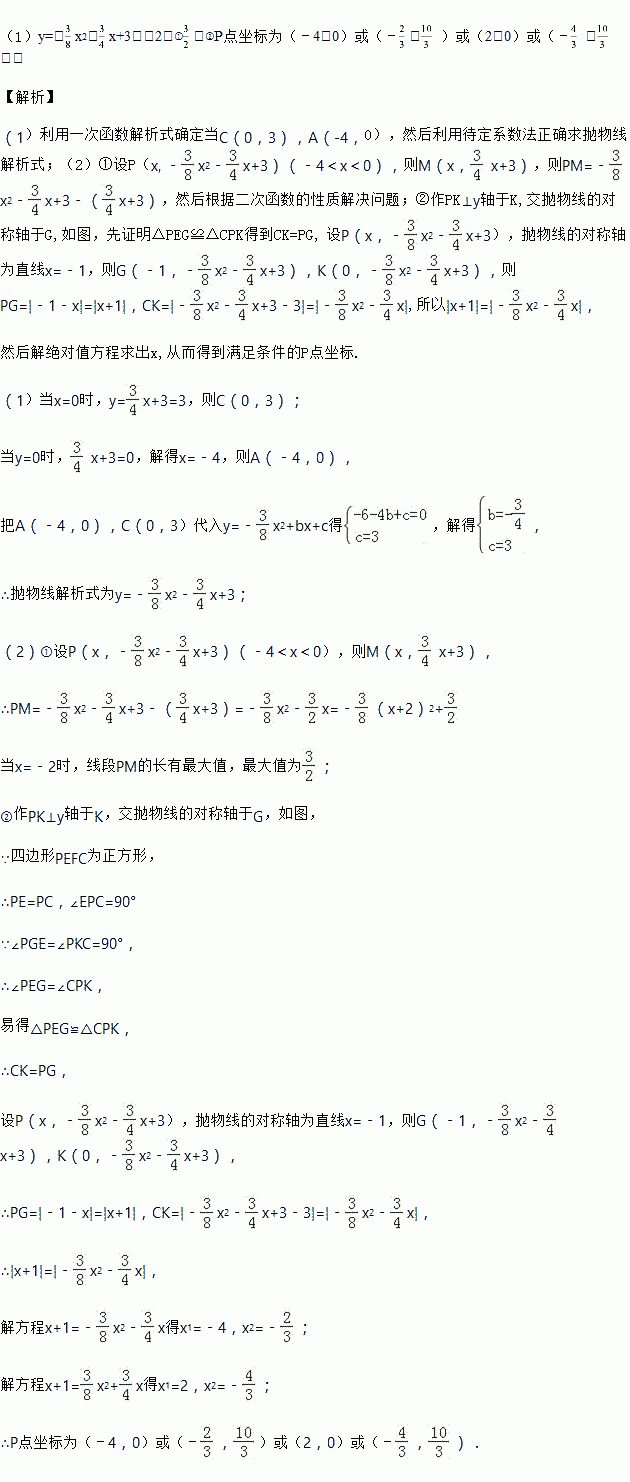 ①若点P在第二象限,过点P作PN⊥x轴于N,交直线AC于点M,求线段PM关于x的函数解析式,并求出PM的最大值;