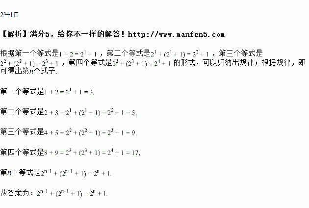 第三个等式是4+5=9,第四个等式是8+9=17,