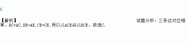 C 【解析】试题分析:三条边对应相等,BC=AC,BE=AE,CE=CE.所以△ACE≌△BCE,故选C.