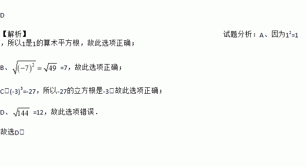 A. 1是1的算术平方根 B.