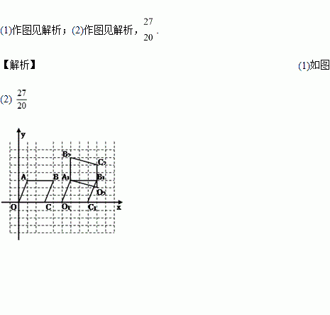 (2)将平行四边形O1A1B1C1绕原点A1逆时针旋转90º,得到平行四边形O2A1B2C2,请画出平行四边形O2A1B2C2,并求出平行四边形O1A1B1C1和平行四边形O2A1B2C2重合的面积.