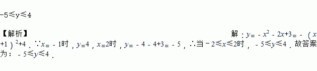 已知抛物线y=-x2-2x+3,当-2≤x≤2时,对应的函数值y的取值范围为____________ .