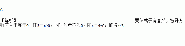 A. x≤3 B. x≠4 C. x≥3且x≠4 D. x≤3且x≠4