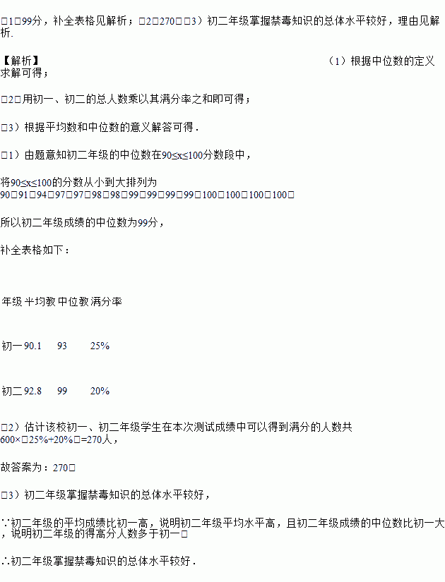 (3)你认为哪个年级掌握禁毒知识的总体水平较好,说明理由.