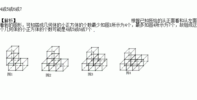 从正面和左面看由一些完全相同的小正方体搭成的几何体,看到的形状图如图所示,则组成这个几何体的小正方体的个数可能是_____________.