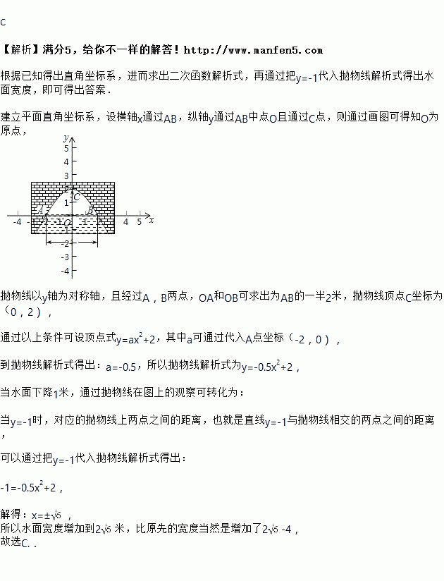 如图,是抛物线形拱桥,当拱顶离水面2m时,水面宽4m,则水面下降1m时,水面宽度增加( )m.