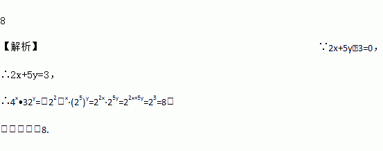 若2x+5y﹣3=0,则4x•32y的值为________.