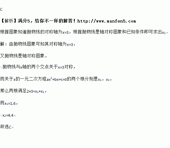 如图,已知二次函数y=ax2+bx+c的部分图象,由图象可知关于x的一元二次方程ax2+bx+c=0的两个根分别是x1=1.6,x2=( )