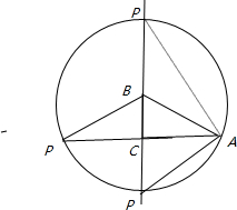 解:如图:当以B为圆心,AB长为半径作圆,交直线BC于两点,即为P,交直线AC于一点,此题符合条件的P点有三个;