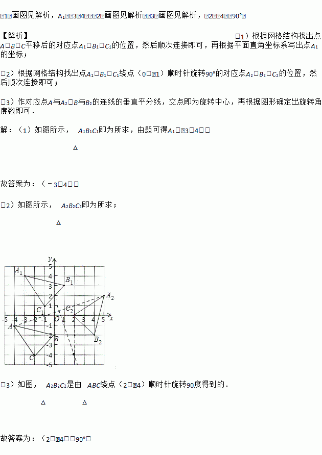 (3)观察图形发现,A2B2C2是由△ABC绕点 顺时针旋转 度得到的.