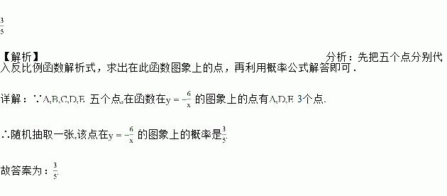 从点A(2,-3)、B(-2,-3)、C(2,3)。D(1,-6)、E(3,-2)中随机取一点,恰好在函数y=-的图象上的概率是___________。