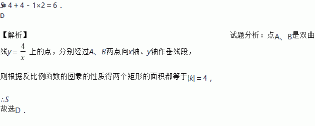 如图,A,B两点在双曲线上,分别经过A,B两点向坐标轴作垂线段,已知S阴影=1,则S1+S2的值为( )