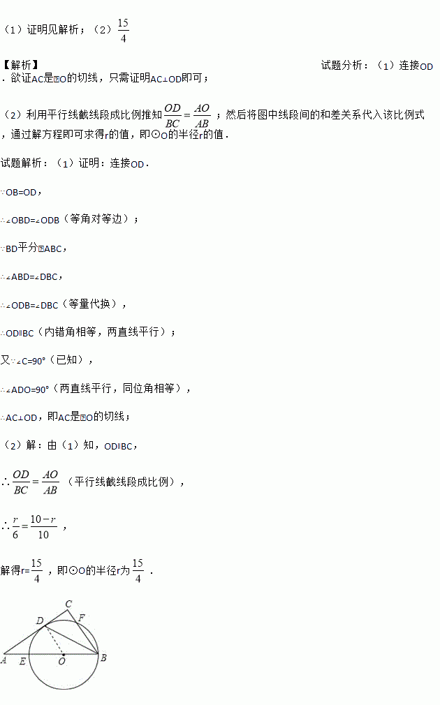 (1)求证:AC是⊙O的切线