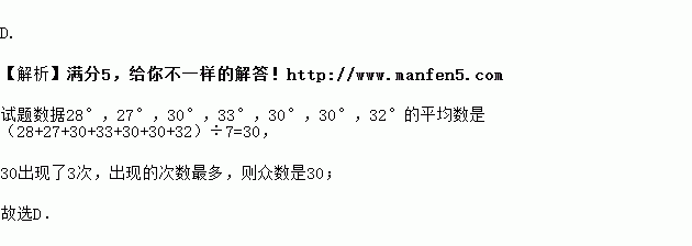我市连续7天的最高气温为:28°,27°,30°,33°,30°,30°,32°,这组数据的平均数和众数分别是( )
