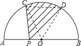 如图,半圆O的直径为AB,P为AB上一点,点C、D为半圆O的三等分点,若阴影部分的面积为6πcm2,则半圆O的半径为________cm.