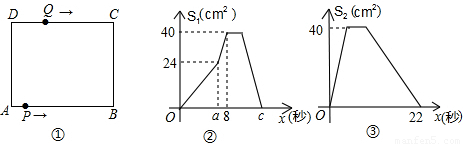 Èçͼ¢Ù£¬ÔÚ¾ØÐÎABCDÖУ¬AB=10cm£¬BC=8cm£¬µãP´ÓA³ö·¢£¬ÑØA¡úB¡úC¡úD·ÏßÔ˶¯£¬µ½DÍ£Ö¹£»µãQ´ÓD³ö·¢£¬ÑØD¡úC¡úB¡úA·ÏßÔ˶¯£¬µ½AÍ£Ö¹£®ÈôµãP¡¢µãQͬʱ³ö·¢£¬µãPµÄËÙ¶ÈΪÿÃë1cm£¬µãQµÄËÙ¶ÈΪÿÃë2cm£¬aÃëʱµãP¡¢µãQͬʱ¸Ä±äËÙ¶È£¬µãPµÄËٶȱäΪÿÃëbcm£¬µãQµÄËٶȱäΪÿÃëdcm£®Í¼¢ÚÊǵãP³ö·¢xÃëºó¡÷APDµÄÃæ»ýS1£¨cm2£©Óëx£¨Ã룩µÄº¯Êý¹ØÏµÍ¼Ïó£»Í¼¢ÛÊǵãQ³ö·¢xÃëºó¡÷AQDµÄÃæ»ýS2£¨cm2£©Óëx£¨Ã룩µÄº¯Êý¹ØÏµÍ¼Ï󣮣¨1£©²ÎÕÕͼ¢Ú£¬Çóa¡¢b¼°Í¼¢ÚÖеÄcÖµ£»
