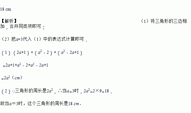 已知三角形的三边长分别是(2a+1)cm,(a2-2)cm,(a2-2a+1)cm.