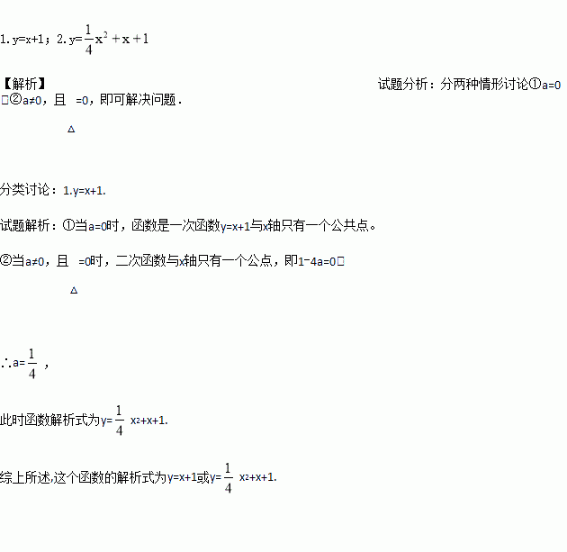 函数y=ax2+x+1的图象与x轴只有一个公共点.求这个函数的关系式;
