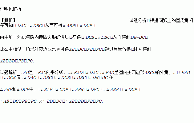 如图,AD是△ABC外角∠EAC的平分线,AD与△ABC的外接圆交于点D,AC,BD相交于点P,连接CD.