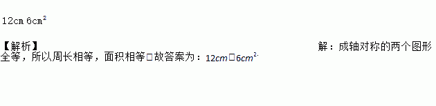 ΔABC和ΔA’B’C’关于直线l对称,若ΔABC的周长为12cm,ΔA’B’C’的面积为6cm2,则ΔA’B’C’的周长为___________,ΔABC的面积为_________.