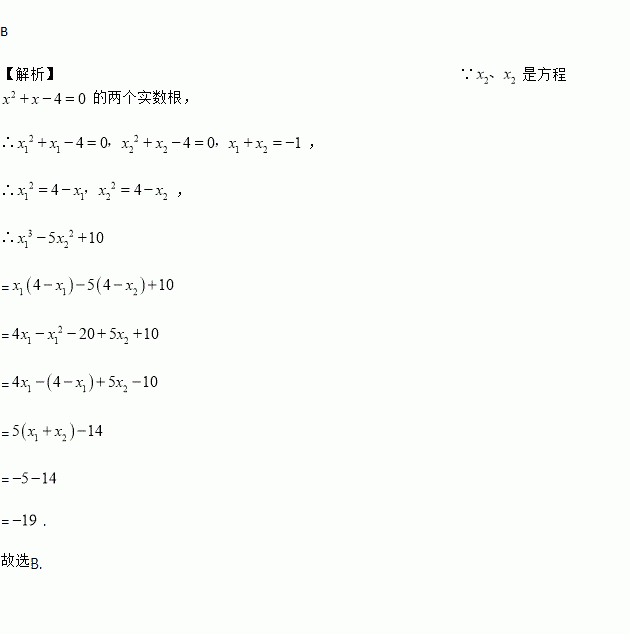 设x1 、x2是方程x2+x﹣4=0的两个实数根,则x13﹣5x22+10=( )