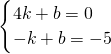 设函数解析式为y=kx+b,将A(4,0),B(-1,-5)分别代入解析式得,