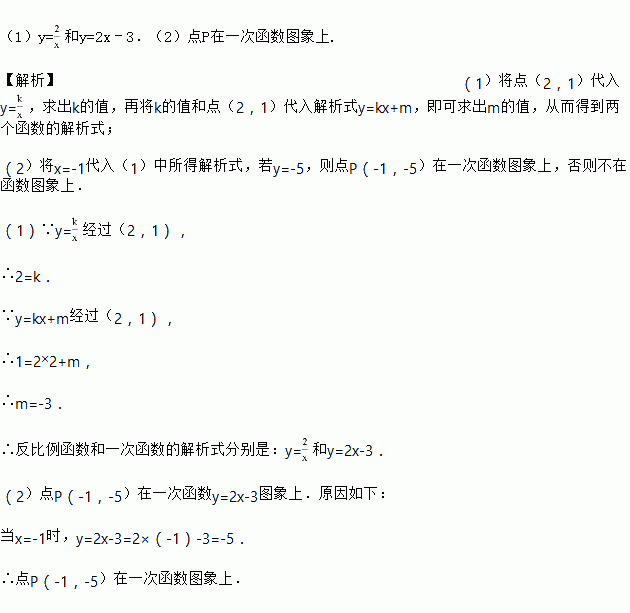 的图象与一次函数y=kx+m的图象交于点(2,1).