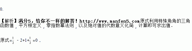 计算:sin30°﹣ +(π﹣4)0+|﹣|.
