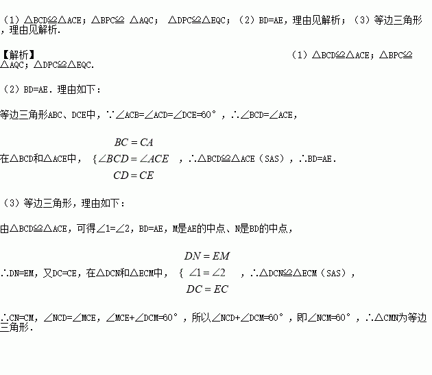 线段BE上有一点C,以BC,CE为边分别在BE的同侧作等边三角形ABC,DCE,连接AE,BD,分别交CD,CA于Q,P.