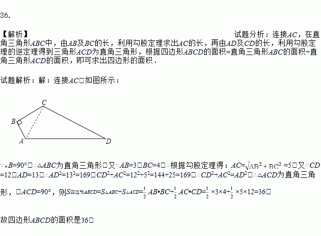 Èçͼ£¬¡ÏB£½90¡ã£¬AB£½3£¬BC£½4£¬CD£½12£¬AD£½13.ÇóËıßÐÎABCDµÄÃæ»ý£®