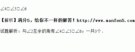 如图,将直尺与三角尺叠放在一起,在图中标记的角中,写出所有与∠2互余的角是_______.