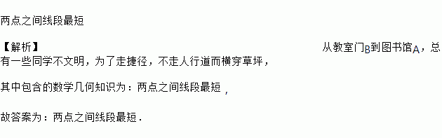 如图,从教室门B到图书馆A,总有一些同学不文明,为了走捷径,不走人行道而横穿草坪,其中包含的数学几何知识为:________