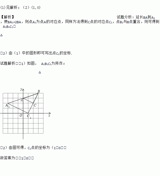 (1)以点B为位似中心,在网格内画出△A1B1C1,使△A1B1C1与△ABC位似,且位似比为2:1.