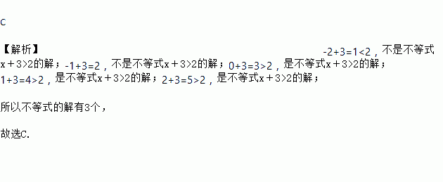 在-2,-1,0,1,2中,不等式x+3>2的解有( )