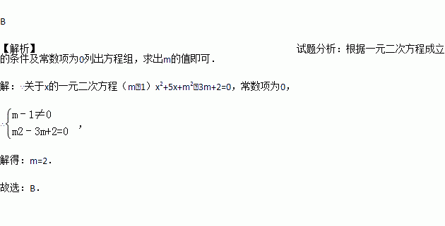 关于x的一元二次方程(m﹣1)x2+5x+m2﹣3m+2=0的常数项为0,则m等于( )