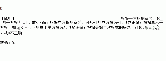 A. 1的平方根是±1 B. ﹣1的立方根是﹣1