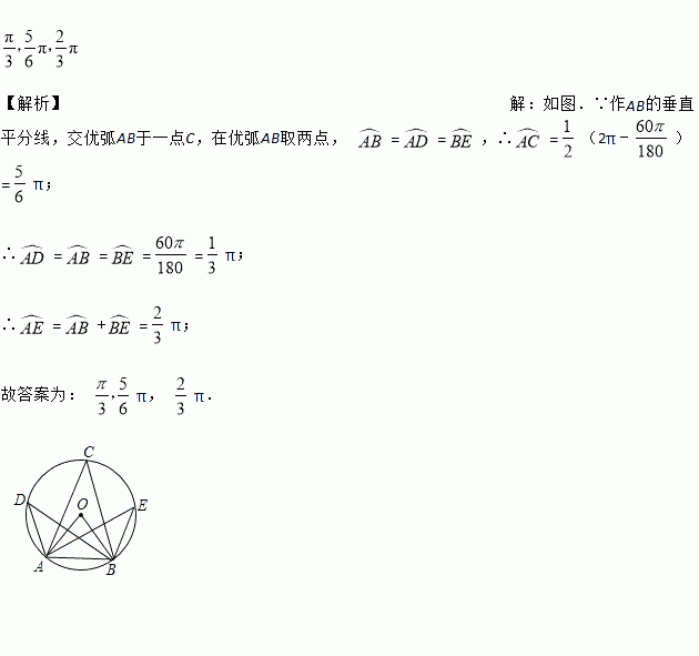 已知:半径为1的中,弦,点C是优弧AB上的一个动点,且是等腰三角形,则劣弧AC的长度等于______ .