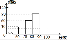 (2)80≤x<90的人数是:200-30-60-20=90(人),补图如下:![]()