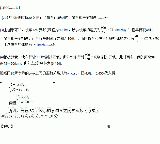 (4)求线段BC所表示的y与x之间的函数关系式,并直接写出自变量x的取值范围;