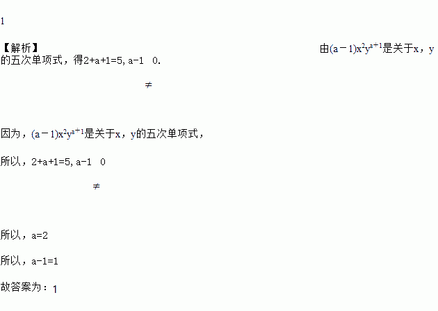 已知(a-1)x2ya+1是关于x,y的五次单项式,则这个单项式的系数是________.