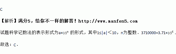 2016年春节黄金周海南旅游大幅增长,据统计,2月7至13日,全省共接待游客约3710000人次,将3710000用科学记数法表示为( )