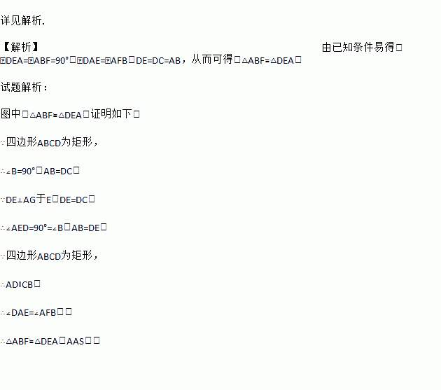 如图,在矩形ABCD中,F是BC边上的一点,AF的延长线交DC的延长线于G,DE⊥AG于E,且DE=DC,根据上述条件,请你在图中找出一对全等三角形,并证明你的结论.